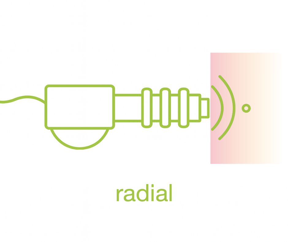 Derzeit arbeite ich mit 2 fokussierten Stosswellentypen der Firma MTS und Wolf und 2 radialen Stosswellen der Firma Drott.